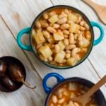 Ha a hús már félig puha, hozzáadjuk az átmosott, előzőleg 24 órára beáztatott babot a zellerlevéllel együtt. Ha szükséges, újra sózzuk, borsozzuk, ha pedig úgy érezzük, akkor egy kevés vízzel is utánapótoljuk. Lefedve főzzük tovább nagyjából egy-másfél órán át.